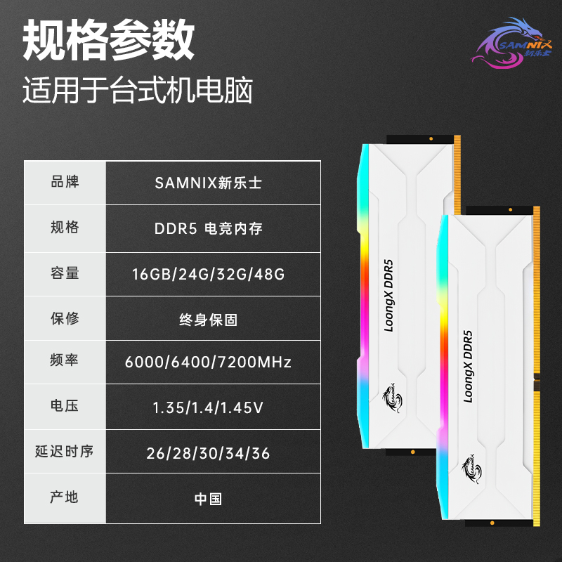 LoongX 屠龙勇士 RGB DDR5 台式机内存 白色